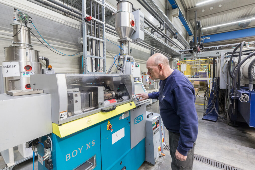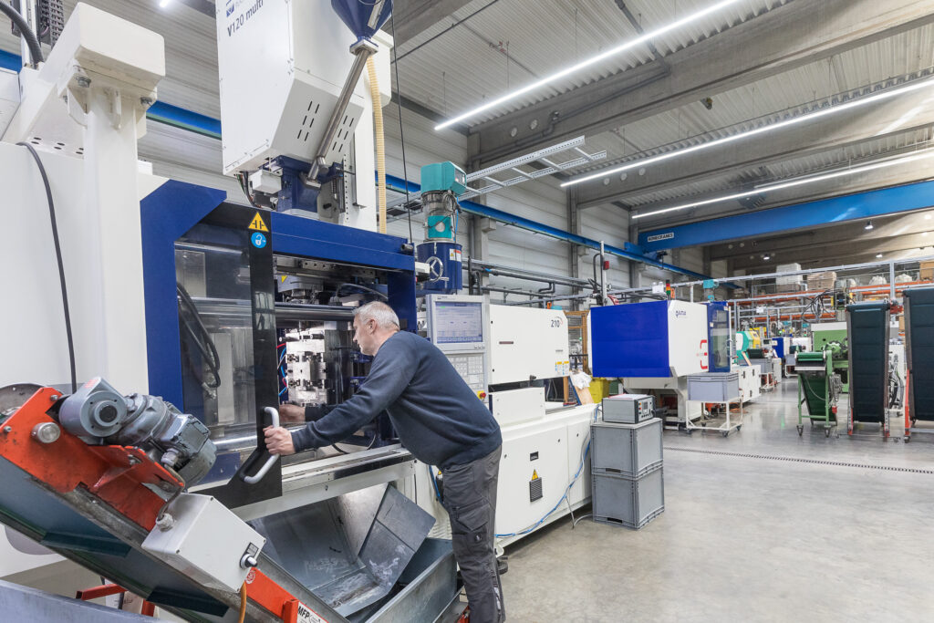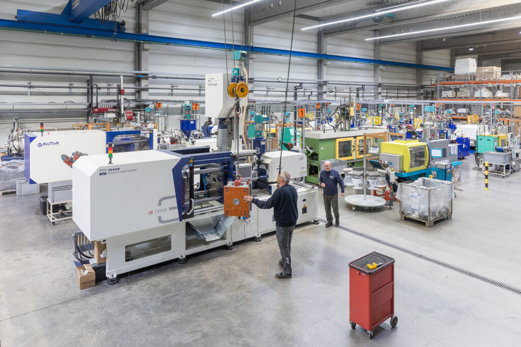 Hiendls moderner Maschinenpark mit 21 Spritzgussmaschinen und Schließkräften von 100 kN bis 2.500 kN ermöglicht eine flexible und leistungsfähige Produktion.